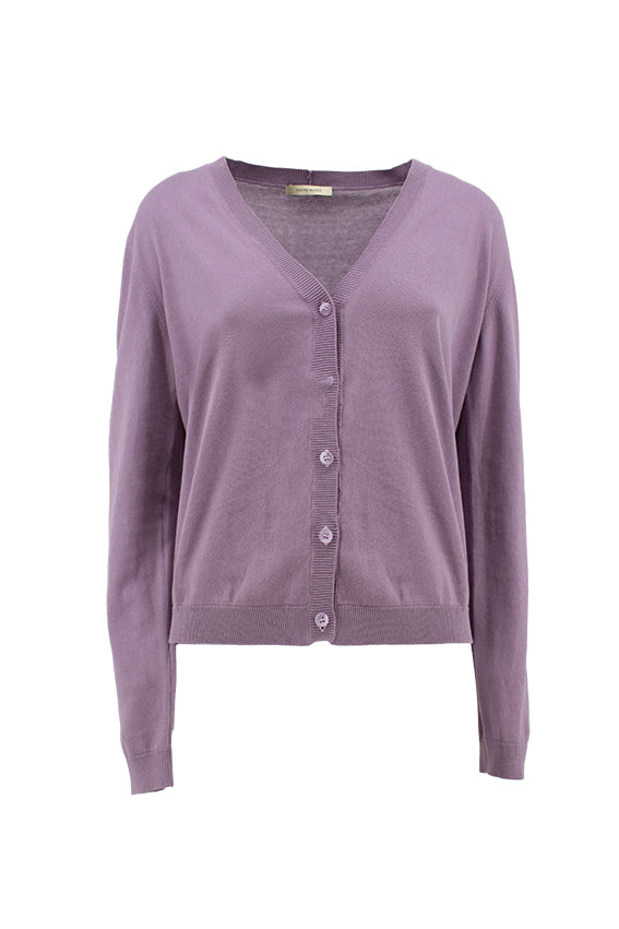 Cardigan scollo a V in cotone tinto capo, finezza 14.
