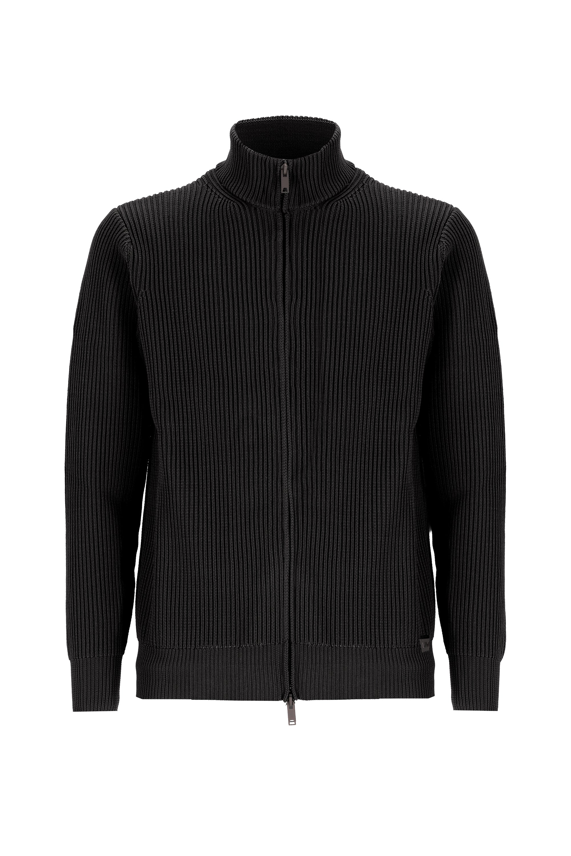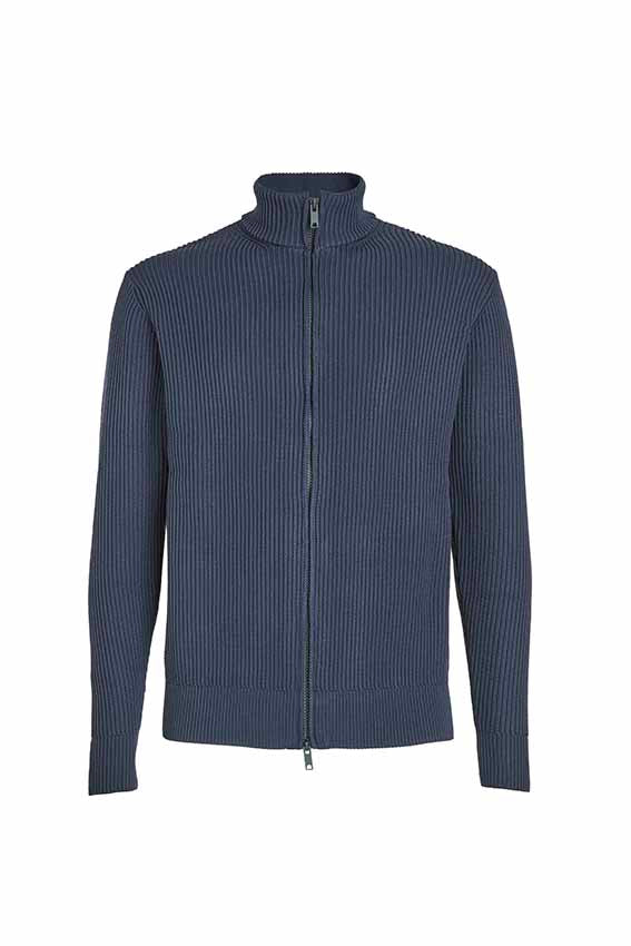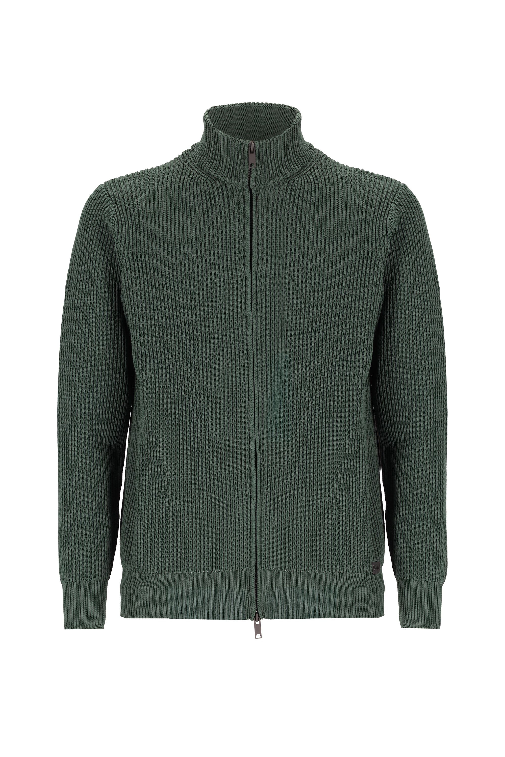 Cardigan full-zip collo lupetto in filato Fibertec punto pannocchia finezza 7. 100% Poliestere