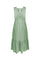 Abito midi di cotone-nylon elasticizzato scollato a V con laccetto dietro al collo e balza al fondo.