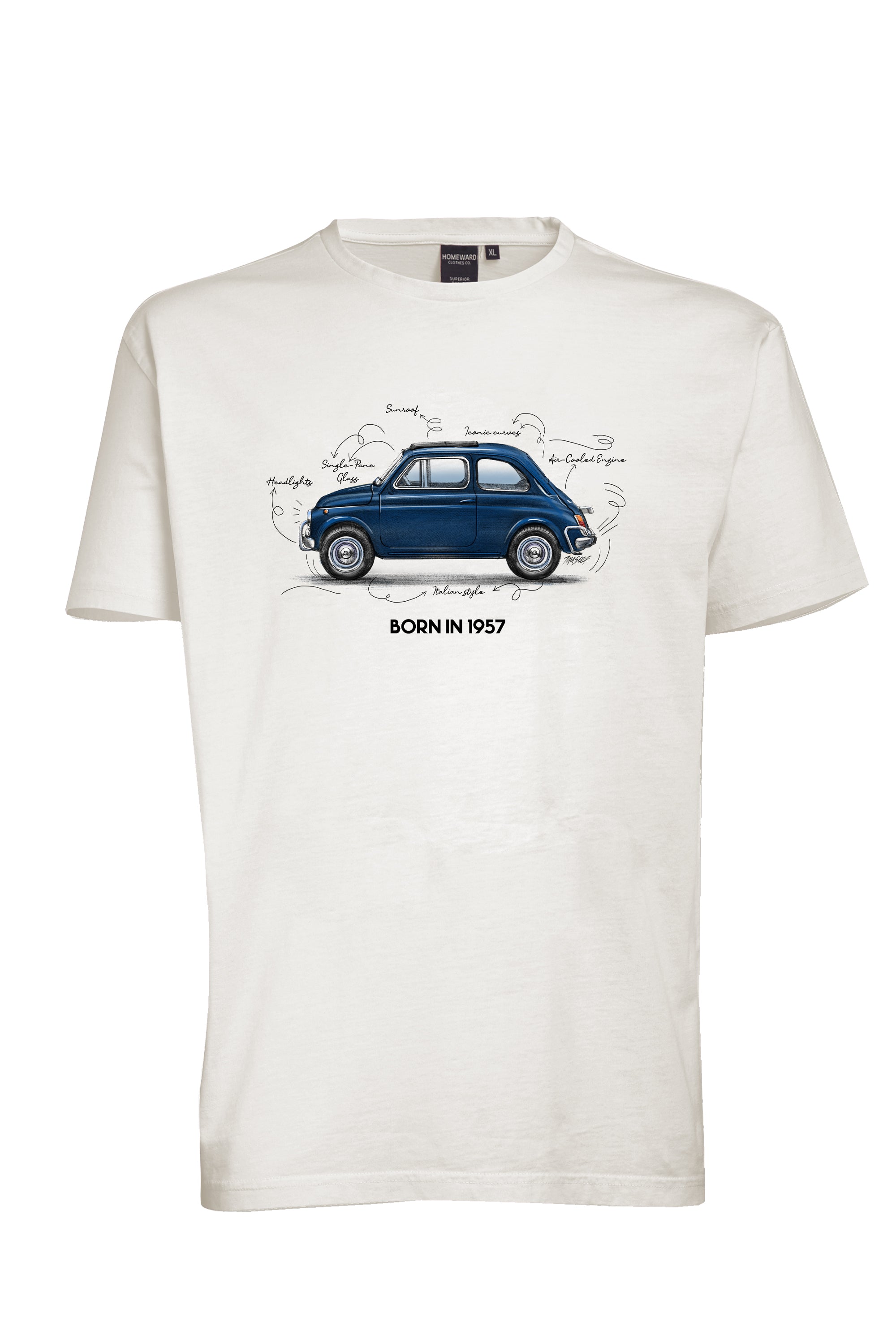 T-Shirt girocollo in jersey di cotone fiammato tinta in capo 140gr con stampa. Disponibile in 3 varianti di stampa.